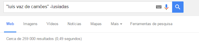 Neste caso devolve páginas onde aparece a expressão "Luís vaz de camões" mas que não contenha a palavra Lusíadas.