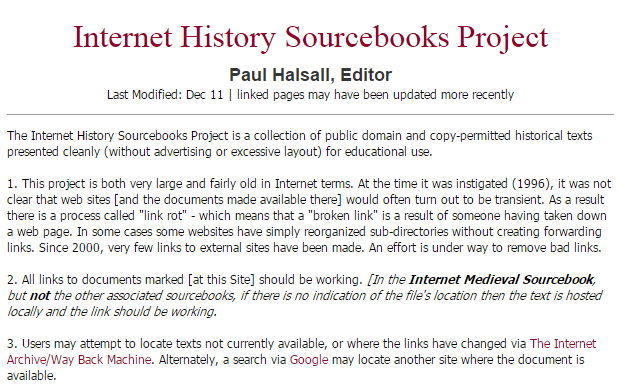 A "Internet History Sourcebooks Project" é uma coleção de domínio público de textos sobre a história da internet e criado com o intuito de ser utilizado para fins educativos.
