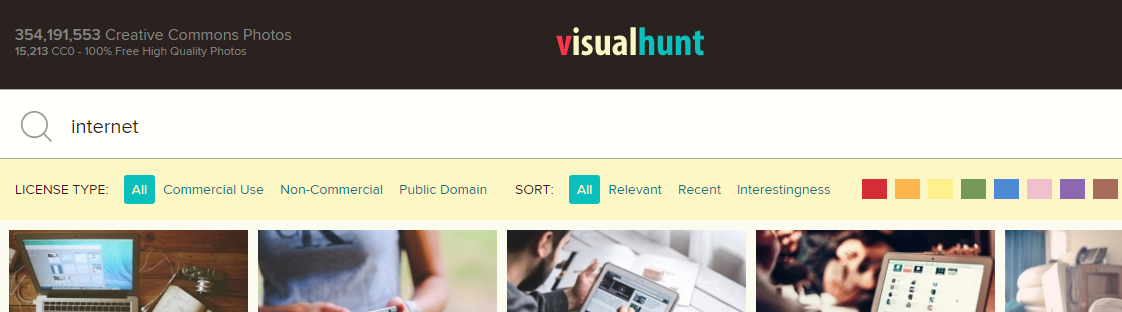 Chama-se Visual Hunt e é uma autêntica biblioteca de imagens de alta resolução que podemos usar livremente. Com um motor de busca muito bem elaborado o site permite fazer a pesquisa através de palavras-chave, usando filtros de uso comercial, domínio público e com licença creative commons. Ainda possibilita a pesquisa por cor.